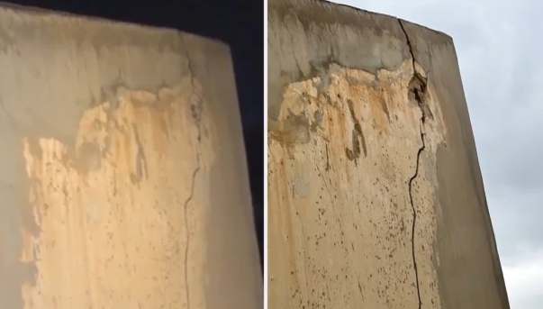 Η δημοσιογράφος του MEGA, Κατερίνα Βάζου, δείχνει με παραστατικό τρόπο πόσο έχει ανοίξει η ρωγμή από την καθίζηση που εκτιμάται στα 5 χιλιοστά.