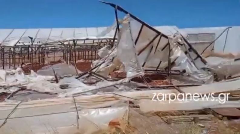 Όπως δείχνει το βίντεο που δημοσιεύτηκε, οι ζημιές σε ορισμένα θερμοκήπια είναι σχεδόν ολοκληρωτικές.