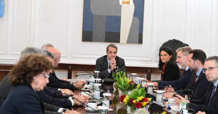 Ο πρωθυπουργός Κυριάκος Μητσοτάκης προεδρεύει αυτή την ώρα σε σύσκεψη με την Υπουργό Εργασίας και Κοινωνικής Ασφάλισης Νίκη Κεραμέως και εκπροσώπους των Εθνικών Κοινωνικών Εταίρων, με αφορμή την Κοινωνική Συμφωνία για τις Συλλογικές Συμβάσεις Εργασίας.