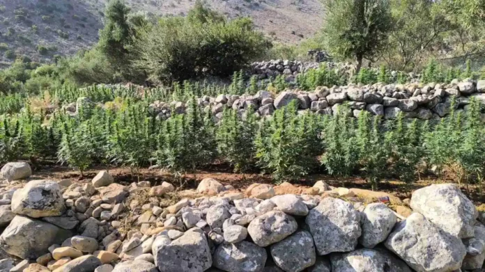 Ειδικότερα, σύμφωνα πάντα με την ΕΛ.ΑΣ., χθες το πρωί, κατόπιν κατάλληλης αξιοποίησης πληροφοριών και στοιχείων, πραγματοποιήθηκε οργανωμένη αστυνομική επιχείρηση σε δύσβατη αγροτοδασική περιοχή του δήμου Ανατολικής Μάνης, κατά την οποία εντοπίστηκε, σε ειδικά διαμορφωμένο και κατάλληλα εκχερσωμένο χώρο με φυσική συγκάλυψη, φυτεία κάνναβης, στην οποία καλλιεργούνταν συνολικά 2.257 δενδρύλλια κάνναβης, ύψους έως 1,70 μέτρων, περίπου, τα οποία εκριζώθηκαν και κατασχέθηκαν μαζί με τον αντίστοιχο αρδευτικό και καλλιεργητικό εξοπλισμό που βρέθηκε στο χώρο.