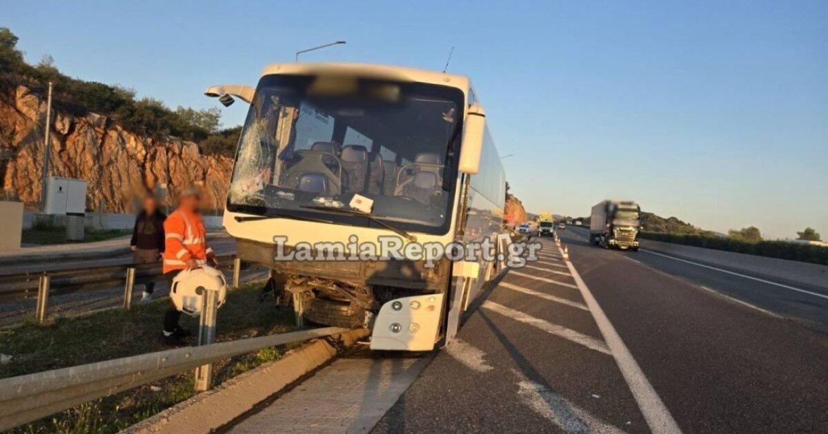 Σύμφωνα με το lamiareport.gr, ο οδηγός του τουριστικού λεωφορείου, που κατευθυνόταν από τη Θεσσαλονίκη προς την Αθήνα, για άγνωστη μέχρι στιγμής αιτία, έχασε τον έλεγχο, με αποτέλεσμα το όχημα να προσκρούσει στις μπάρες και μετά από ανεξέλεγκτη πορεία πολλών μέτρων να ακινητοποιηθεί στο διαχωριστικό διάζωμα.