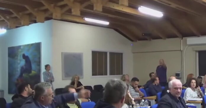 Η κατάσταση ξέφυγε τελείως, με την πρόεδρο του δημοτικού συμβουλίου να προσπαθεί ανεπυτυχώς να επαναφέρει την τάξη.
