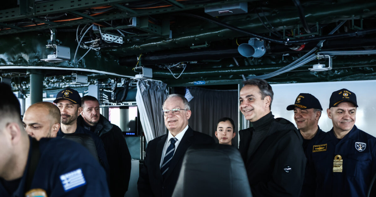 Στο κατάστρωμα της πρώτης ελληνικής φρεγάτας Belharra «Κίμων» βρέθηκαν το πρωί της Πέμπτης (15.01.2026) ο Πρόεδρος της Δημοκρατίας Κωνσταντίνος Τασούλας και ο πρωθυπουργός Κυριάκος Μητσοτάκης, στο πλαίσιο της εν πλω τελετής υποδοχής του νέου πλοίου του Στόλου.