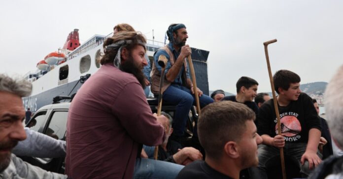 Οι διαμαρτυρόμενοι κτηνοτρόφοι της Λέσβου δεν επιτρέπουν σε φορτηγά αυτοκίνητα που μεταφέρουν κυρίως τρόφιμα και άλλα ευπαθή προϊόντα να βγουν στα λιμάνια της Μυτιλήνης από τα πλοία της γραμμής και τα φορτηγά εμπορικά οχηματαγωγά πλοία.