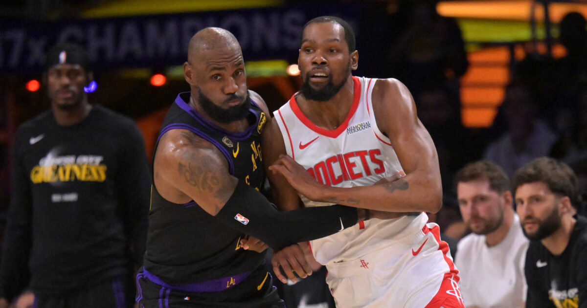 Μονομαχία του Τζέιμς με τον Ντουράντ στο Λέικερς-Ρόκετς/ Mandatory Credit: Jayne Kamin-Oncea-Imagn Images
