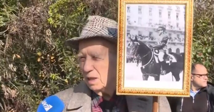 Όπως φαίνεται σε ρεπορτάζ του ΑΝΤ1 ο 89χρονος κρατάει μια εικόνα του τέως βασιλιά Κωνσταντίνου και αναφέρεται στο χαμό του.