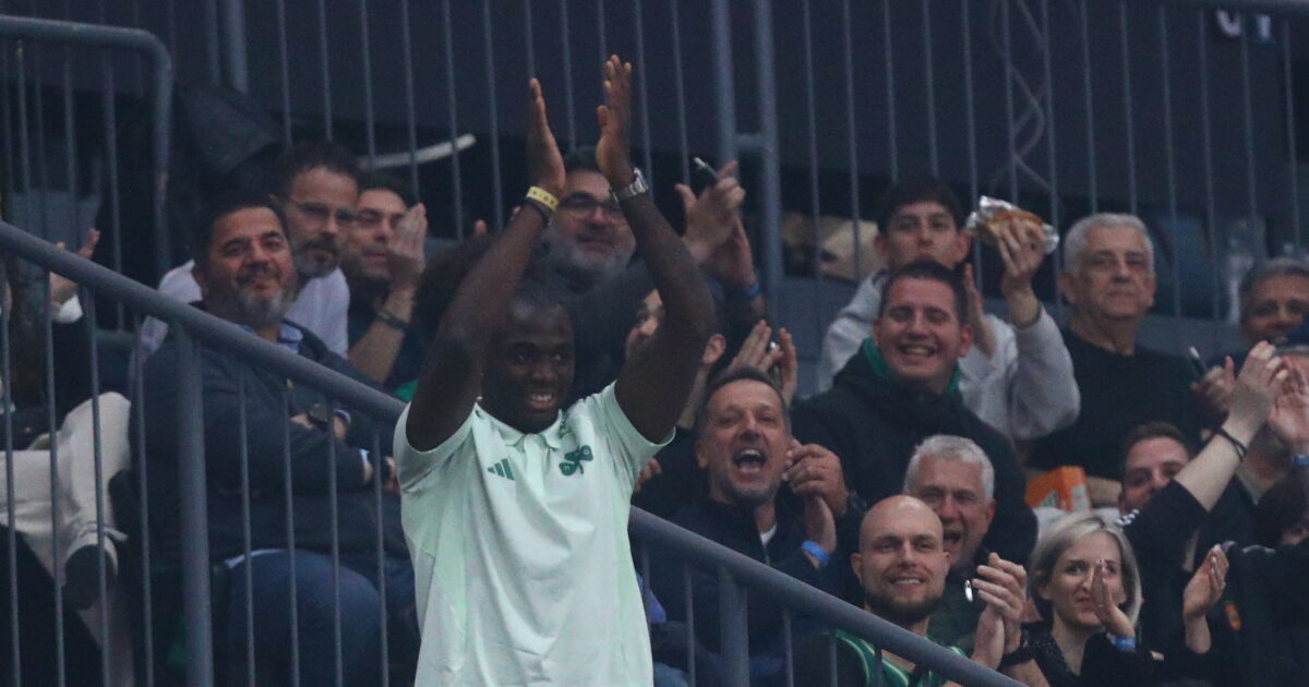 Ο Τετέι αποθεώνεται στο γήπεδο του μπάσκετ του Παναθηναϊκού (ΜΑΡΚΟΣ ΧΟΥΖΟΥΡΗΣ / EUROKINISSI)