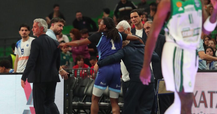 Άτυχη στιγμή για τον Ταϊρί Άπλμπι της Μυκόνου, κατά τη διάρκεια του αγώνα της ομάδας με τον Παναθηναϊκό στο “T-Center” για το φινάλε της regular season στη GBL.