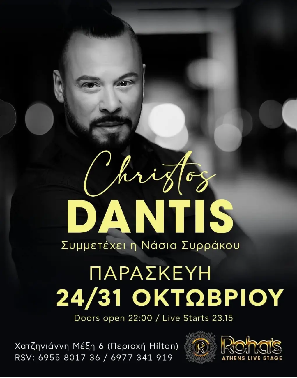 Ο μοναδικός Χρήστος Δάντης, μετά την εκρηκτική του εμφάνιση στο Rohas Live Stage, επιστρέφει δυναμικά για δύο ακόμα Παρασκευές, στις 24 και 31 Οκτωβρίου!
