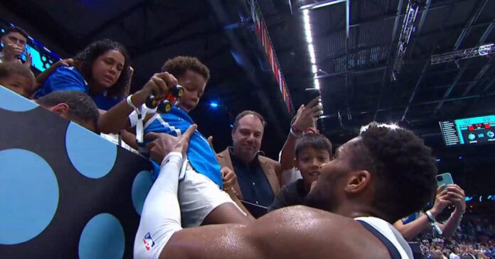 Αμέσως μετά τη λήξη του αγώνα, ο Γιάννης Αντετοκούνμπο κατευθύνθηκε προς την εξέδρα και τη σύζυγό του, Μαράια και κατέβασε στο παρκέ τα παιδιά του, παίρνοντας αγκαλιά την κόρη του.