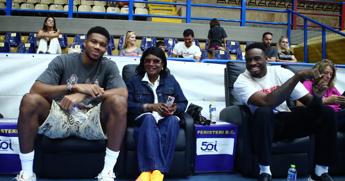 Ο Γιάννης Αντετοκούνμπο βρέθηκε και πάλι στο γήπεδο του Περιστερίου, αυτή τη φορά μαζί με τον μεγαλύτερο αδερφό του, Θανάση, και τη μητέρα τους, Βερόνικα, για να παρακολουθήσουν από κοντά τις προσπάθειες του Άλεξ Αντετοκούνμπο.