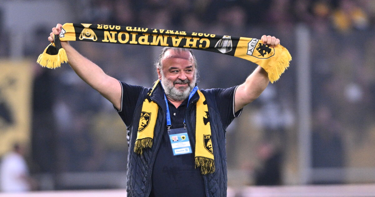 Ο Μάριος Ηλιόπουλος με το σφύριγμα της λήξης του Μανθάνο στο ντέρμπι της ΑΕΚ και του ΠΑΟΚ κατέβηκε στον αγωνιστικό χώρο και συνεχάρη τους παίκτες της ομάδας του, ενώ πανηγύρισε με τον κόσμο και το κασκόλ του υψωμένο.