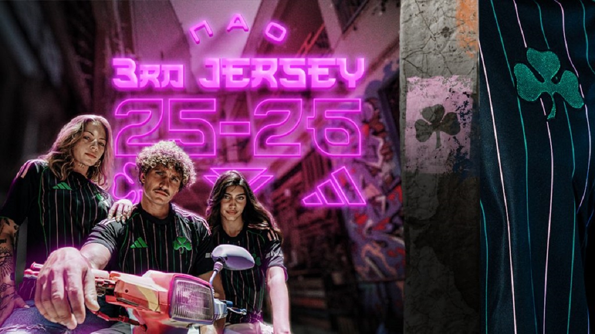 «Η νέα τρίτη εμφάνιση της ομάδας για τη σεζόν 2025/26, σε συνεργασία με την Adidas, έχει ως βασικό χρώμα το μαύρο, με διακριτικές πράσινες και ροζ ρίγες που προσδίδουν έναν σύγχρονο και αστικό χαρακτήρα.