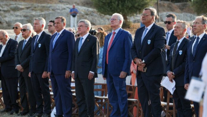 Ο Πρόεδρος της Διεθνούς Ολυμπιακής Επιτροπής Τόμας Μπαχ, ξεκίνησε την ομιλία του με ευχαριστίες. «Είναι πάντα μια τόσο συγκινητική στιγμή να βρισκόμαστε εδώ. Με το εμπνευσμένο φόντο της Ακρόπολης, δεν υπάρχει ωραιότερο σημείο από τον λόφο της Πνύκας για να αναλογιστούμε τα δύο μεγάλα δώρα που προσέφερε ο ελληνικός πολιτισμός στον κόσμο: τη δημοκρατία και τους Ολυμπιακούς Αγώνες, που και τα δύο γεννήθηκαν εδώ στην Ελλάδα και διαμορφώνουν τον κόσμο μας μέχρι σήμερα.