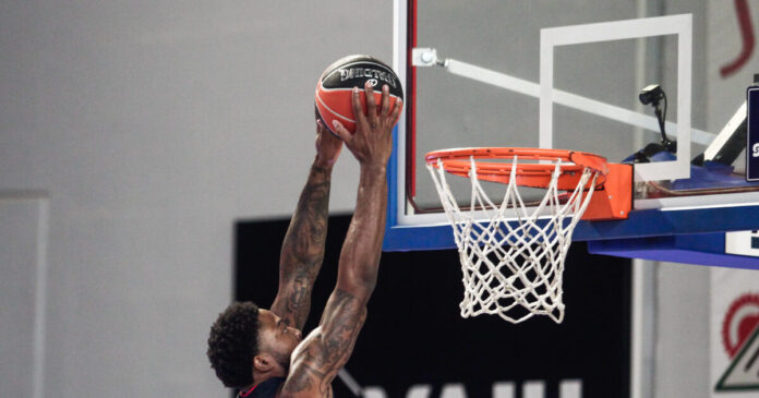Ο Ταϊρίκ Τζόουνς καρφώνει με τον Ολυμπιακό/ (ΘΑΝΑΣΗΣ ΚΑΛΛΙΑΡΑΣ / EUROKINISSI)