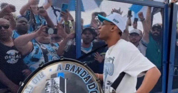 Κατά την άφιξή του, οπαδοί υποδέχθηκαν τον Τετέ και ο Βραζιλιάνος δεν έμεινε απλός θεατής. Ο πρώην παίκτης του Παναθηναϊκού πήρε ένα τύμπανο, έδωσε το… ρυθμό, τραγούδησε συνθήματα μαζί με τους οπαδούς και έδειξε έμπρακτα τον ενθουσιασμό του για την επιστροφή στην Γκρέμιο.
