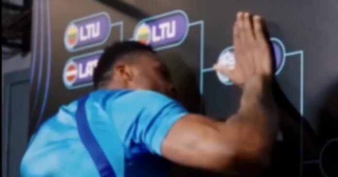 Όπως και μετά την πρόκριση επί του Ισραήλ, έτσι και τώρα, ο Θανάσης Αντετοκούνμπο -που δεν είχε ούτε δευτερόλεπτο συμμετοχής κόντρα στη Λιθουανία- κόλλησε με δύναμη και μανία το ελληνικό αυτοκόλλητο.