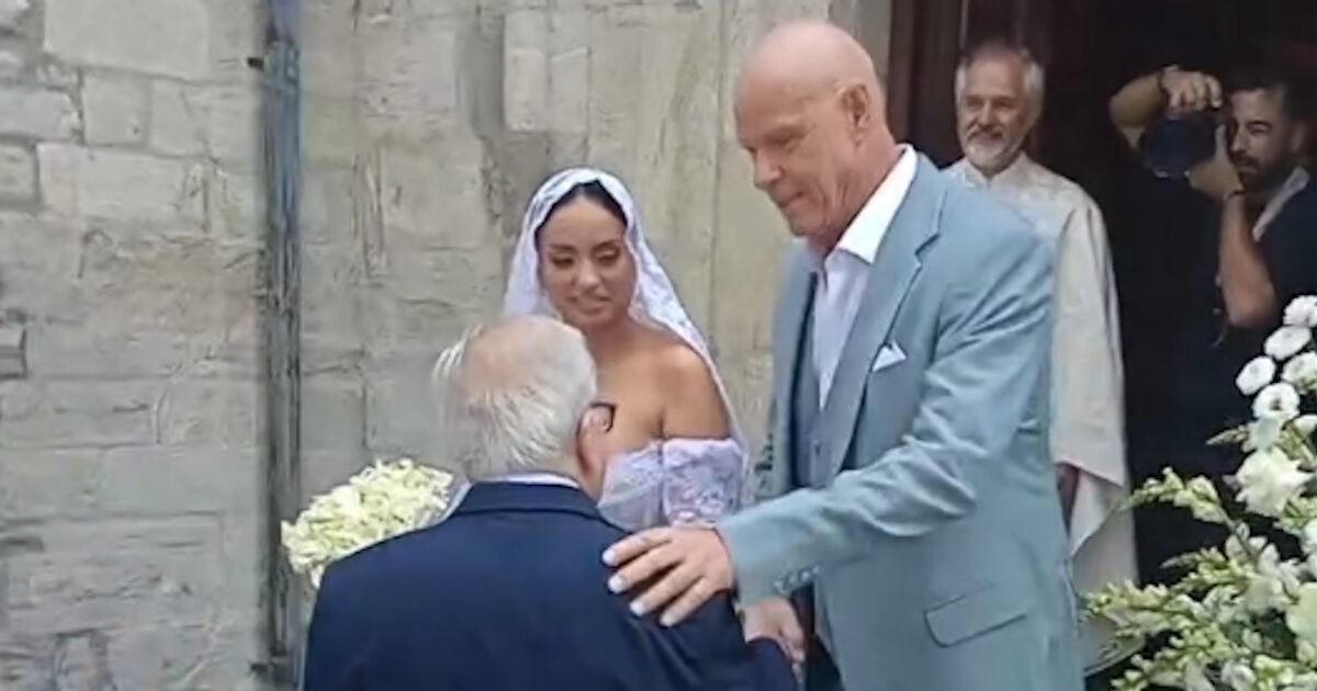«Σε ευχαριστώ που μου την έδωσες», είπε συγκινημένος στον πεθερό του ο γαμπρός, με τον πατέρα της νύφης να κάνει μία χιουμοριστική κίνηση.