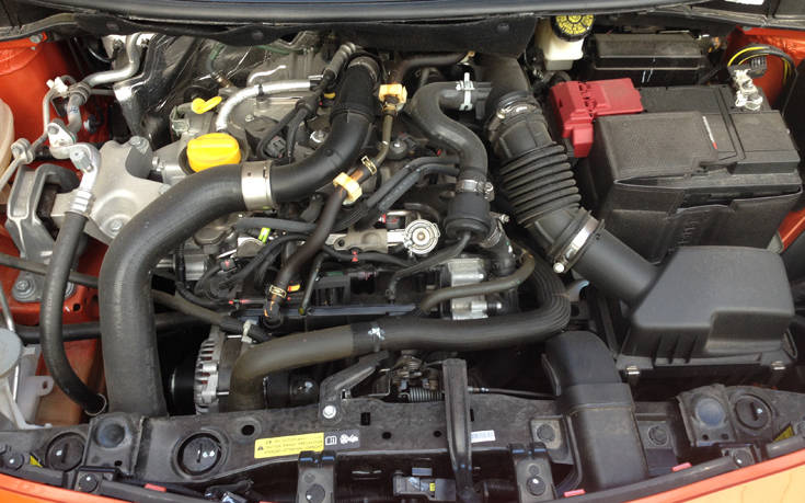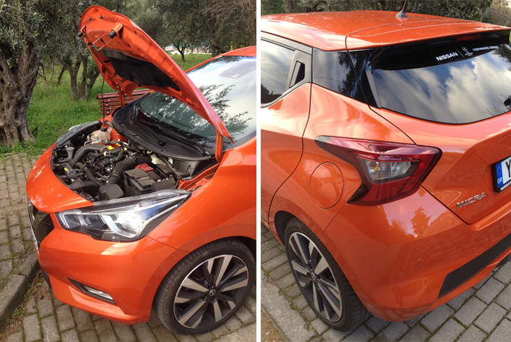 Είναι η πρώτη φορά στην ιστορία του Micra, που αυτό εφοδιάζεται με turbo κινητήρα βενζίνης, με απόδοση 90 ίππων και 140 Nm ροπής (95 PS και 150 Nm με overboost). Ο κινητήρας αυτός (πληροί την αυστηρότερη προδιαγραφή Euro 6b) που συνδυάζεται με χειροκίνητο 5τάχυτο κιβώτιο, παράγει κάποιους κραδασμούς (χαρακτηριστικό γνώρισμα των 3κύλινδρων) και είναι απρόθυμος στις χαμηλές στροφές, αλλά μετά 3000 στροφές (κάπου εκεί μπαίνει το turbo στην εξίσωση), η λειτουργία του ομαλοποιείται, η προθυμία του αυξάνεται ραγδαία, οι κραδασμοί εξαφανίζονται, ο θόρυβος ελαχιστοποιείται και το τράβηγμα είναι εντυπωσιακό μέχρι τις 6500 σαλ, όπου και βρίσκονται οι κόκκινες περιοχές του στροφομέτρου.