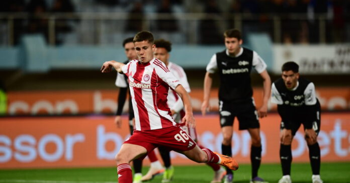 Ο Χρήστος Μουζακίτης εκτελεί το πέναλτι κόντρα στον ΟΦΗ (ΓΙΩΡΓΟΣ ΜΑΤΘΑΙΟΣ / EUROKINISSI)