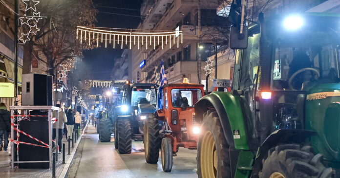 Στο κέντρο της Λάρισας τα τρακτέρ απο το μπλόκο της Νίκαιας