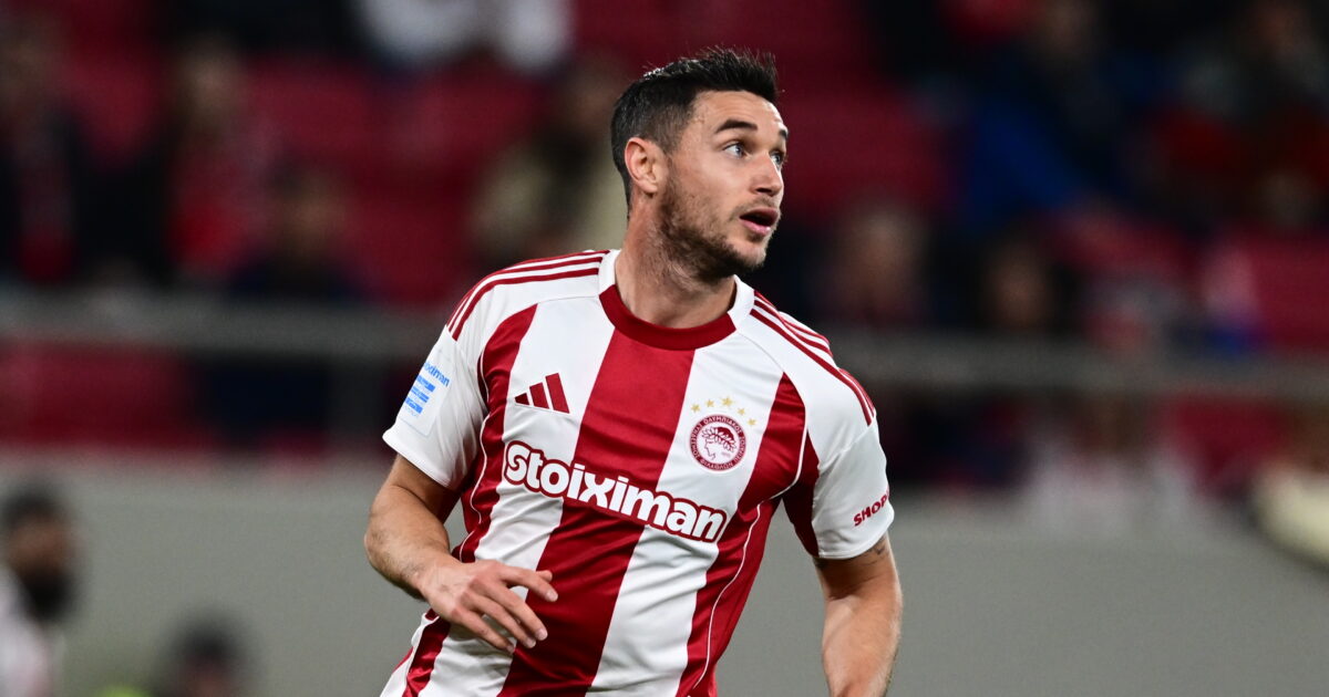 Ο Ρόμαν Γιάρεμτσουκ με τη φανέλα του Ολυμπιακού/ (KLODIAN LATO / EUROKINISSI)