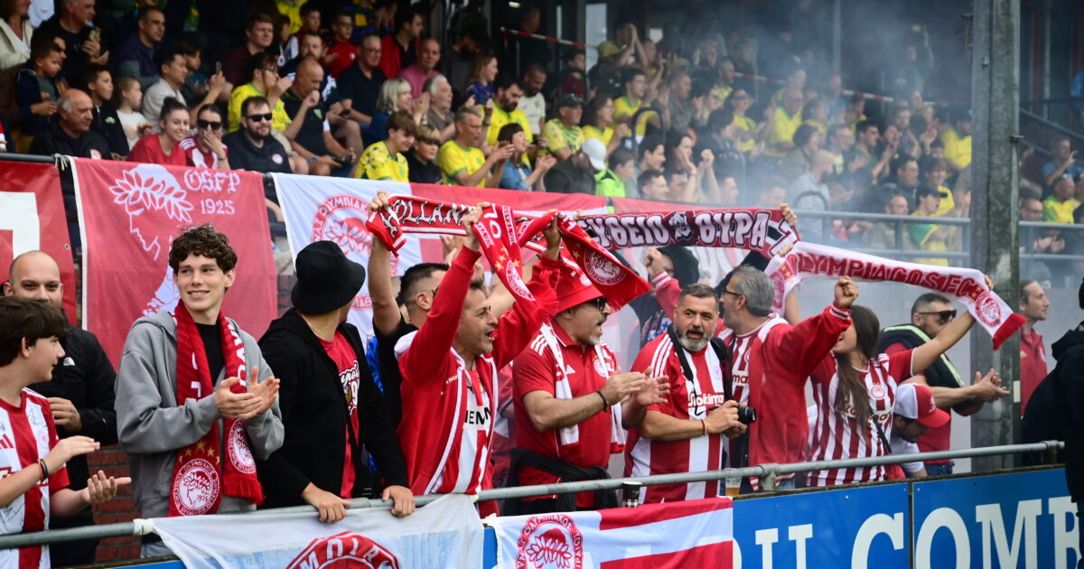 Δεκάδες οπαδοί του Ολυμπιακού έδωσαν το “παρών” στο Βλααρντίνγκεν της Ολλανδίας για το φιλικό παιχνίδι με την αγγλική Νόριτς και ανάρτησαν πανό και κασκόλ της ομάδας τους, κάνοντας αισθητή την παρουσία τους στο γήπεδο.