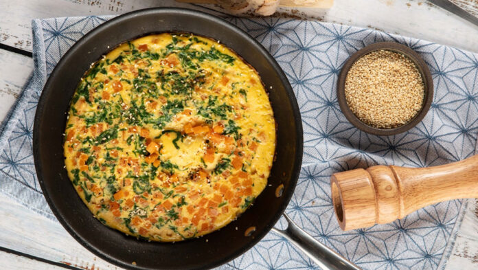 • Βάζεις την ομελέτα προσεχτικά σε ένα σκεύος και την ψήνεις στον φούρνο για 2 λεπτά μέχρι να φουσκώσει