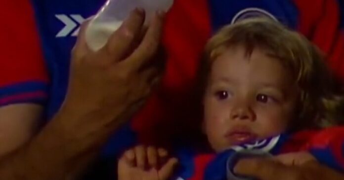 Απίστευτη εικόνα από γήπεδο της Αργεντινής, με έναν οπαδό της Σάν Λορέντζο να έχει εμφανιστεί με ένα μικρό παιδί στην κερκίδα, αλλά να μην καταφέρνει να το ταΐσει, παρακολουθώντας το ματς.