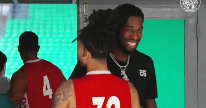 Ο Γάλλος σέντερ των “πρασίνων” έκανε είσοδο από τα αποδυτήρια του Telekom Center Athens, στο glass floor του γηπέδου, όπου είχε θερμούς εναγκαλισμούς με παίκτες της Μονακό (μεταξύ άλλων, συναντήθηκε με τους συμπατριώτες του Οκόμπ, Μπεγκαρίν και Στραζέλ).