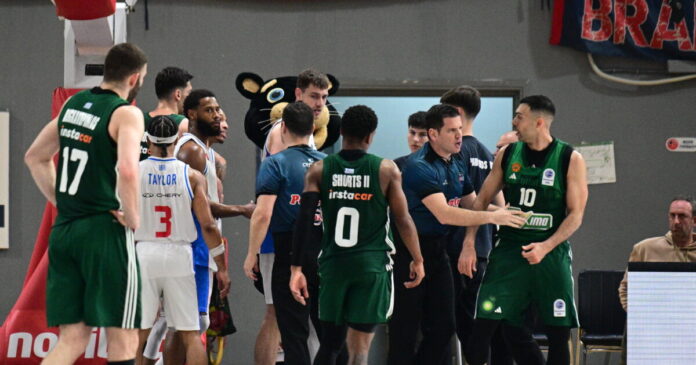 Οι ψυχραιμότεροι μπήκαν στη μέση για να αποφευχθεί ο καυγάς και οι διαιτητές χρεώσαν και τους δύο παίκτες με μία τεχνική ποινή, ενώ έδωσαν και αντιαθλητικό φάουλ στον Τόμασον, με αποτέλεσμα να αποβληθεί.