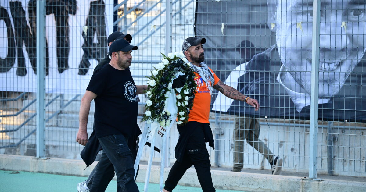Σημαντική στιγμή στο Πανθεσσαλικό, με αντιπροσωπεία των οργανωμένων φίλων του ΟΦΗ να καταθέτει στεφάνι στο πέταλο του ΠΑΟΚ στη μνήμη των αδικοχαμένων φίλων του “δικεφάλου του Βορρά”, πριν την έναρξη του τελικού του Κυπέλλου Ελλάδας Betsson.
