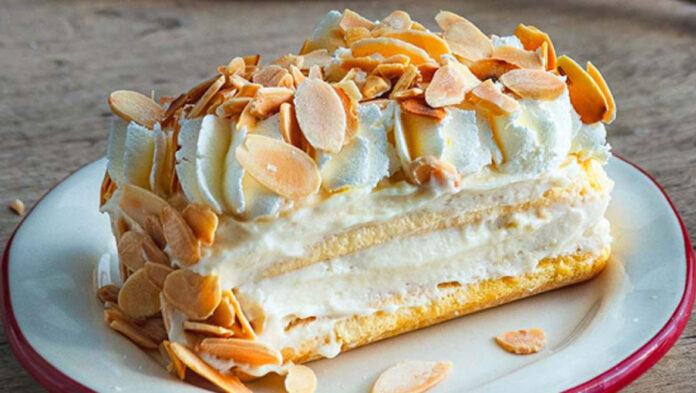 Ένα εντυπωσιακό γλυκό ψυγείου με κρέμα αμυγδάλου, άρωμα λικέρ πικραμύγδαλου και καβουρντισμένο αμύγδαλο φιλέ. Απαλό, αρωματικό και ιδανικό για γιορτές, τραπέζια και κάθε περίσταση που θέλετε να σερβίρετε κάτι ξεχωριστό!