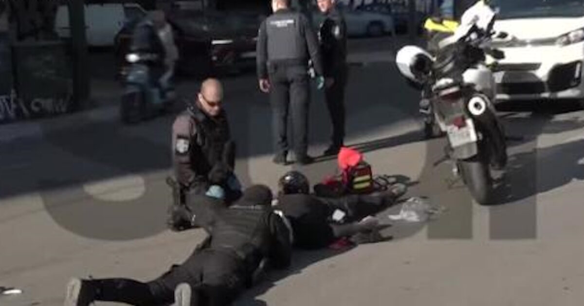 Ο αστυνομικός της ομάδας ΔΙΑΣ ξάπλωσε μέσα στη μέση της Πατησίων και μίλησε με τον νεαρό οδηγό μίας μοτοσικλέτας, ο οποίος λίγο πριν είχε τροχαίο ατύχημα.