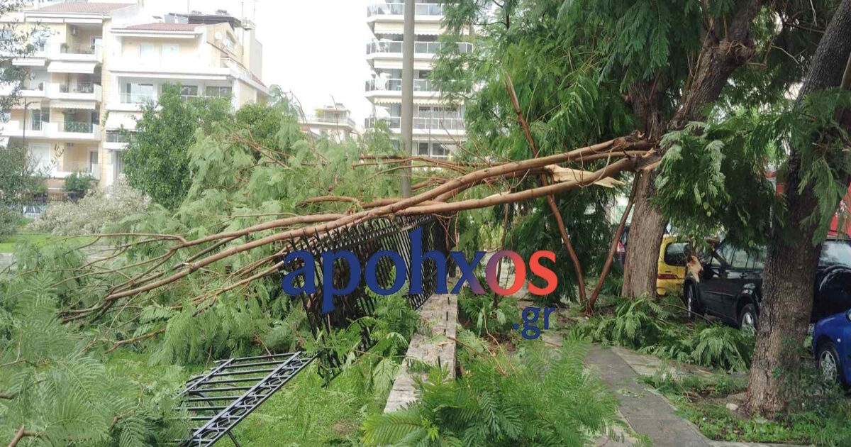 Οι υπηρεσίες του δήμου και η Πυροσβεστική βρίσκονται στα σημεία, προκειμένου να απομακρύνουν τα πεσμένα δέντρα και να αποκαταστήσουν την κυκλοφορία.