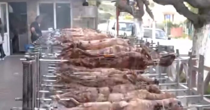 Πάνω από 80 σούβλες έστησε κρεοπωλείο στην Πάτρα για να εξυπηρετήσει τους πελάτες του που αδυνατούν να σουβλίσουν αρνιά και κοκορέτσια.
