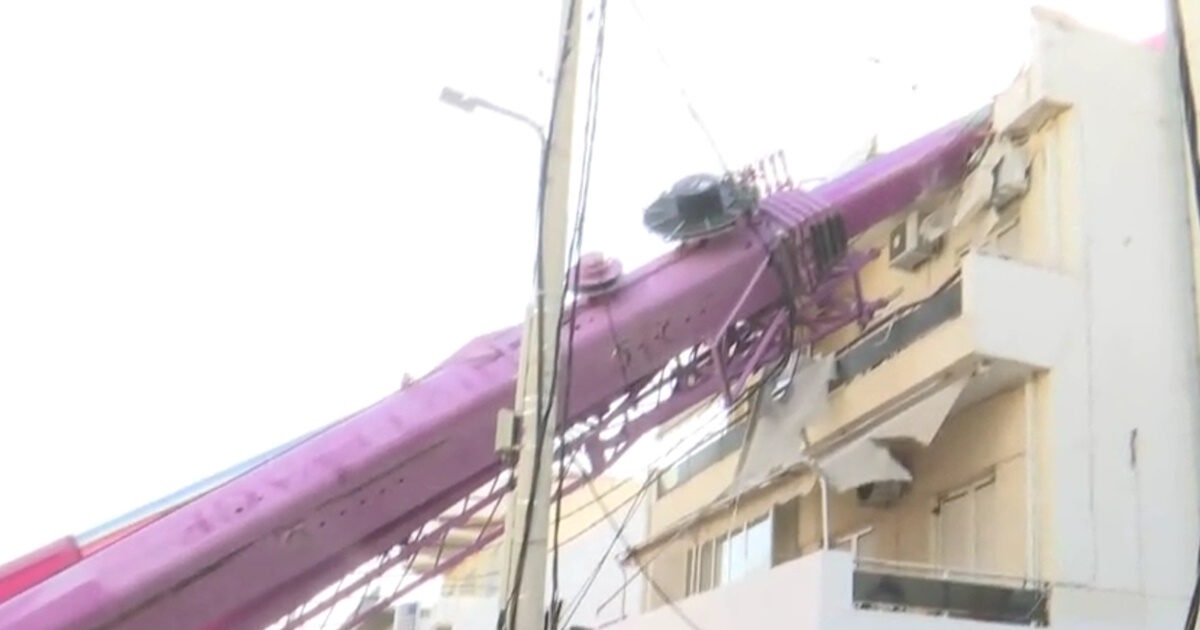 Τότε ο μεγάλος γερανός πήρε απότομη κλίση και έπεσε πάνω στη διώροφη πολυκατοικία.