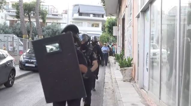 Το απόγευμα της Τετάρτης, πάνοπλοι αστυνομικοί των ομάδων ΕΚΑΜ και ΟΠΚΕ, με πολιορκητικό κριό και ασπίδες στα χέρια, έφτασαν έξω από πολυκατοικία στην Πετρούπολη, σε δρόμο πολύ κοντά σε αυτόν που σημειώθηκε η επίθεση.