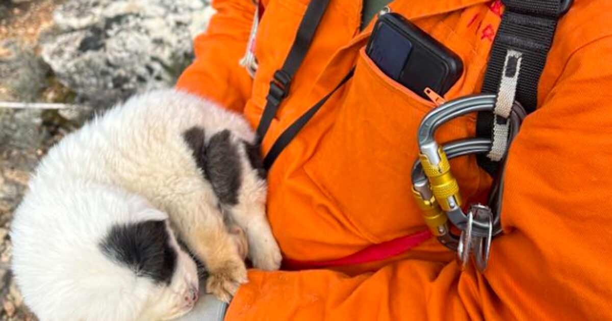 Φρίκη στο Σπήλαιο της Καίτης στο Πήλιο. Άγνωστος ή άγνωστοι έριξαν κουτάβια από ύψος 20 μέτρων. Μέλη της ομάδας «Χείρων» κατάφεραν να διασώσουν το ένα και απευθύνουν έκκληση για υιοθεσία του μικρού ζώου.