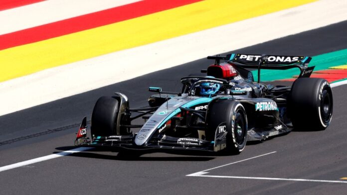 Ο Ράσελ κράτησε την πρωτιά στην εκκίνηση, μπροστά από τον Φερστάπεν, ενώ ο Αντονέλι με τη δεύτερη Mercedes ξεπέρασε τον Πιάστρι και ανέβηκε τρίτος. Πολύ γρήγορα, όμως, τα δεδομένα διαφοροποιήθηκαν, καθώς η μεσαία γόμα ελαστικών που είχαν επιλέξει σχεδόν όλοι οι οδηγοί δεν άντεξε στις υψηλές θερμοκρασίες της πίστας «Ζιλ Βιλνέβ» και το ένα μετά το άλλο τα μονοθέσια μπήκαν στα πιτς για αλλαγή ελαστικών, με τον Λιούις Χάμιλτον να είναι ο χαμένος της υπόθεσης, αφού έχασε αρκετό έδαφος. Οι Λάντο Νόρις και Σαρλ Λεκλέρκ, οι μόνοι που εκκίνησαν με σκληρή γόμα, βρέθηκαν στις δύο πρώτες θέσεις. Σταδιακά, οι Ράσελ και Φερστάπεν κάλυψαν την απόσταση από τους δύο προπορευόμενους, με τον Βρετανό μάλιστα να προσπερνά τη Ferrari του Λεκλέρκ, πριν ο Μονεγάσκος μπει για το πρώτο πιτ-στοπ. Λίγο αργότερα, ήταν η σειρά του Νόρις για αλλαγή ελαστικών, αφήνοντας τους Ράσελ και Φερστάπεν να παλεύουν για την πρωτιά. Η Red Bull, όμως, δεν ήταν αρκετά γρήγορη κι έτσι ο Ολλανδός έχασε ρυθμό και μπήκε γρήγορα για το δεύτερο πιτ-στοπ, ακολουθούμενος από τον Αντονέλι, που βγήκε ακριβώς πίσω από τον παγκόσμιο πρωταθλητή. Ο Ράσελ κράτησε μερικούς γύρους ακόμη πριν την τελευταία αλλαγή ελαστικών, για να ακολουθήσουν οι δύο McLaren και -με κάποιους γύρους καθυστέρηση- ο Λεκλέρκ.