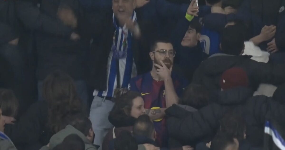 Η Ρεάλ Σοσιεδάδ νίκησε για δεύτερη σερί χρονιά την Μπαρτσελόνα στο γήπεδό της και οι οπαδοί της έστησαν “πάρτι” στις κερκίδες του Ανοέτα, με… θύμα έναν φίλο των Καταλανών.