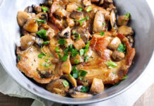 Προσθέτεις το μαϊντανό και τις 2 σκελίδες σκόρδου, ανακατεύεις καλά και σβήνεις με το 1 φλιτζάνι κρασί