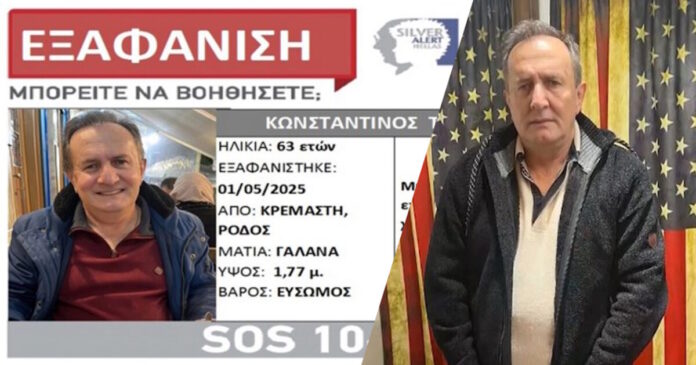 Ο 64χρονος ξενοδόχος, Κωνσταντίνος Τσιαντής είχε εξαφανιστεί την 1η Μαΐου του 2025 από το σπίτι του στη Ρόδο και η εξαφάνισή του είχε δηλωθεί στις 3 Μαΐου στο αστυνομικό τμήμα Ιαλυσού.