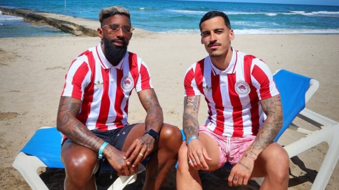 Οι δυο παίκτες του Ολυμπιακού εκμεταλλεύτηκαν την διακοπή του πρωταθλήματος, λόγω εορτών και έπαιξαν ποδόσφαιρο στην άμμο σε μια παραλία της Κρήτης.