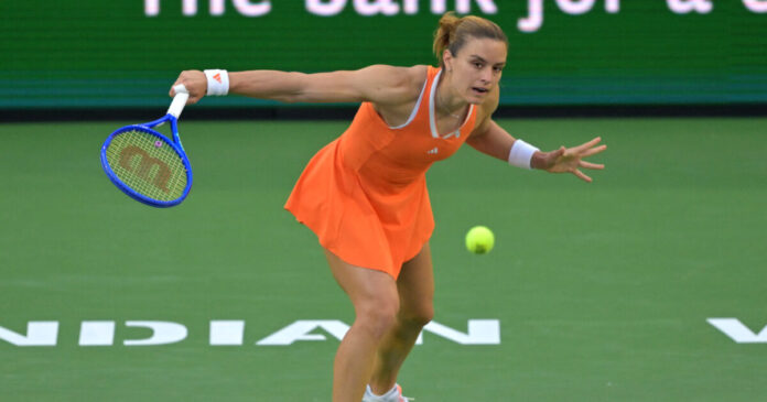 Η Μαρία Σάκκαρη σερβίρει στο Indian Wells/ Mandatory Credit: Jayne Kamin-Oncea-Imagn Images