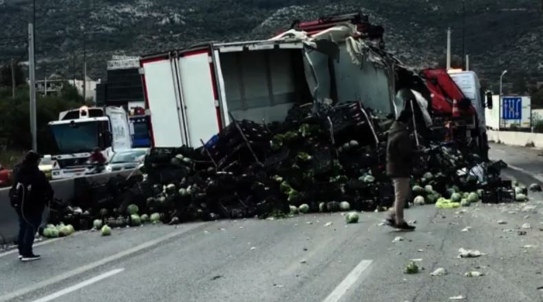 Είναι ο ίδιος που το Ιανουάριο του 2023 είχε βγει αλώβητος από φορτηγό στον Κηφισό, όταν και τότε είχε ανατραπεί. Χθες ο δρόμος γέμισε λάχανα και δυο χρόνια νωρίτερα από τα πορτοκάλια που μετέφερε.