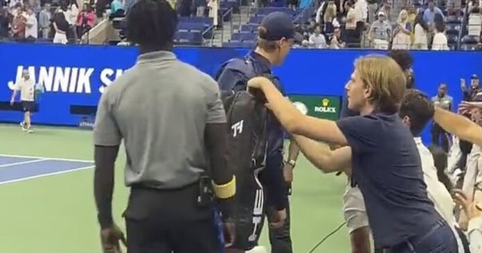 Ο Ιταλός τενίστας είχε μόλις εξασφαλίσει την πρόκρισή του στα προημιτελικά του τουρνουά στη Νέα Υόρκη και μάζευε τα πράγματά του πριν επιστρέψει στα αποδυτήρια. Ο Sinner ετοιμαζόταν να φύγει από το γήπεδο στο US Open όταν πλησίασε τους θεατές της πρώτης σειράς για να χαρίσει σε έναν από αυτούς μια πετσέτα. Εκείνη τη στιγμή, σταμάτησε για να βγάλει μια selfie με έναν θεατή και τότε ακριβώς ο θρασύς θεατής προσπάθησε να κατεβάσει το φερμουάρ της τσάντας του Sinner.