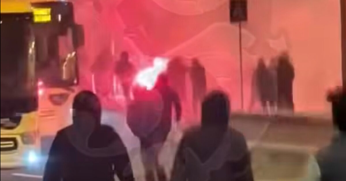 Σαν αποτέλεσμα, οι οπαδοί των δυο ομάδων “αντάλλαξαν” φωτοβολίδες και πέτρες, ενώ δεν έλειψαν και οι μάχες σώμα με σώμα.