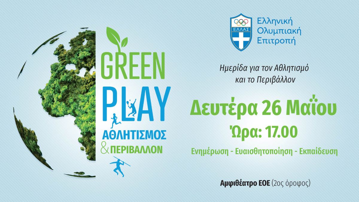 Τη Δευτέρα 26 Μαΐου 2025, στις 17:00, η Επιτροπής Αθλητισμού και Περιβάλλοντος της Ελληνικής Ολυμπιακής Επιτροπής διοργανώνει στο Αμφιθέατρο της, την ημερίδα “GREEN PLAY: Αθλητισμός & Περιβάλλον”. Στόχος της δράσης είναι η ενημέρωση, η ευαισθητοποίηση και η εκπαίδευση γύρω από την αειφορία στον χώρο του αθλητισμού.