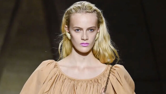 Στο show του οίκου Chloé για την Άνοιξη/Καλοκαίρι 2026, τα ροζ χείλη δεν πέρασαν απαρατήρητα — αντιθέτως, ήταν το απόλυτο statement. Ο makeup artist Yadim Carranza, γνωστός για την τολμηρή του προσέγγιση, εμπνεύστηκε από τα ’80s και παρουσίασε αυτό που ο ίδιος περιγράφει ως “lilac pink bismuth lips”: χείλη με ιριδίζον φινίρισμα σε bubblegum αποχρώσεις.